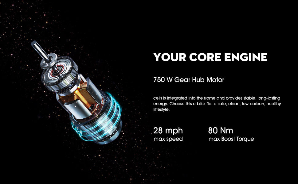 【Powerful Motor & Battery】 With 48V 750W brushless gear motor, it can easily assist you to travel at 28 MPH. With 48V / 13Ah lithium removable battery, the mileage can be more than 25 miles, and you can charge the battery in the frame or alone when you take it out.